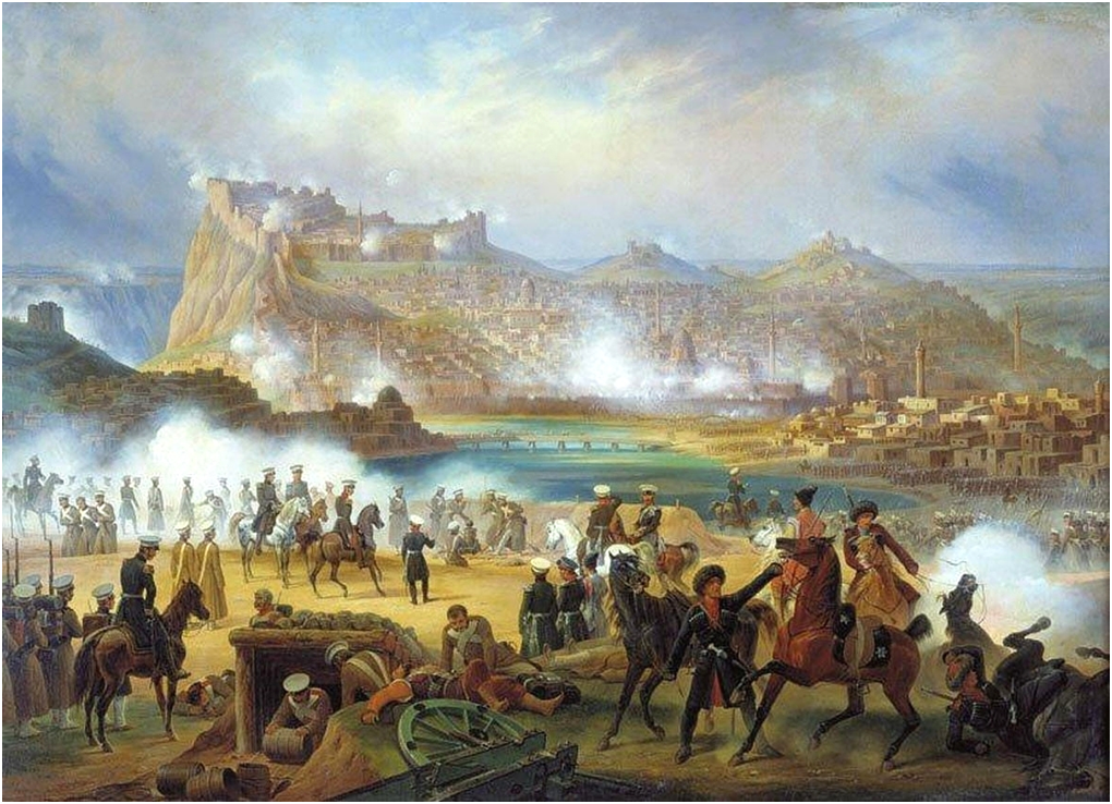 В середине мая 1829 года турецкие войска начали наступательные действия в разных направлениях. Эрзерумский сераскир Гаджи-Салех, собрав до 70 тысяч солдат и офицеров, двинулся на Карс; трапезунтский паша с 30- тысячным корпусом должен был вторгнуться в Гурию, а ванский паша — взять крепость Баязет. Командующий Отдельным Кавказским корпусом генерал от инфантерии И.Ф. Паскевич, уведомленный об этом казачьей разведкой, решил нанести туркам упреждающий удар. Собрав около 18 тысяч солдат и офицеров при 70 орудиях, он перешёл через Саганлугский горный хребет, 19 и 20 июня одержал победы над войсками Гакки-паши и Гаджи Салеха при урочищах Каинлы и Миллидю. После этого он быстрым маршем подступил к Эрзеруму, принудив его после мощных бомбардировок сдаться 27 июня (8 июля).