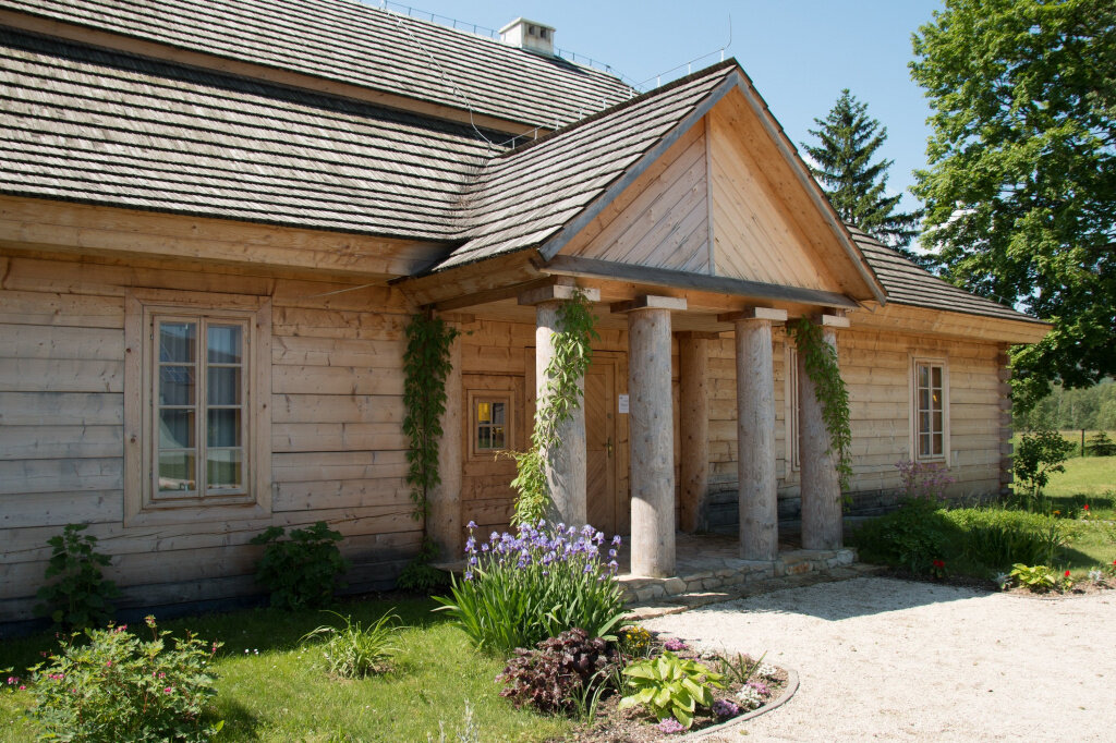 Традиционный деревянный дом в прежние времена строили из ели, сосны или кедра, иногда – из лиственницы. Баню – из осины или липы.
