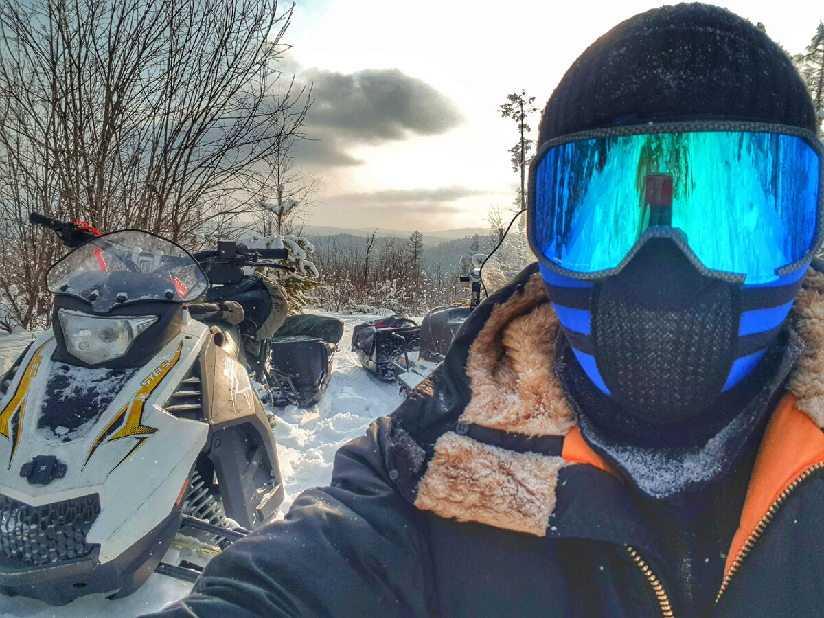 На Маритуй (КБЖД) 1 часть. Наш маршрут составил пятьдесят два километра. Читая отзывы людей ходивших этой дорогой, было понятно, что день предстоит тяжёлый. Зима давала нам преимущество. Теперь болота и речки были скованы льдом и не представляли опасности, но трудностей в этом походе хватало. На этот раз три снегохода навострили свои лыжи осилить непростой трек. В прошлый раз мы пытались пройти по реке Большая Половинная, но у нас ничего не вышло. Сейчас двинемся другой дорогой и посмотрим что из этого выйдет. Первые часы маршрута всё спокойно. Идём со средней скоростью никуда не торопимся. День сегодня пасмурный, пробрасывает снежок. ❄ На полпути нам навстречу выезжает трэкол на больших колёсах. Выходят мужики, представляются работниками Национального Прибайкальского парка, просят предъявить разрешение на посещение данного парка. А у нас нет. Предложили проехать к ним в офис для составления протокола. Через несколько километров мы прибыли на место. Офисом оказалось небольшое Зимовьё