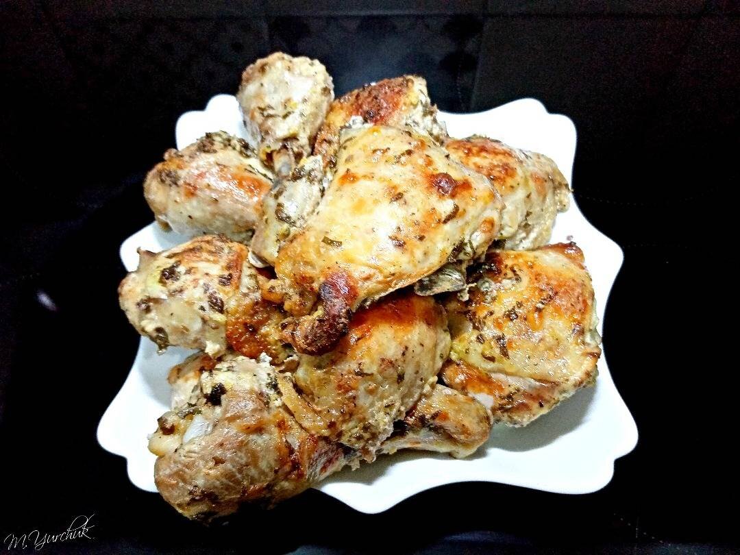 #кукпад4 С Днем Рождения!!! Потомки Гомера знают толк в готовке! Маринад на основе йогурта, лимонного сока и ароматных трав превращает привычные куриные окорочка в изысканное блюдо средиземноморской кухни. К слову, окорочка можно заменить любыми другими куриными «запчастями». Ингредиенты: - нежирного йогурта без добавок или кефира, - куриных окорочков (голеней, крылышек), - оливкового масла (растительного), - сушеного орегано, - соль, перец черный молотый, - чеснока, - лимонного сока, цедра лимона, свежей петрушки Способ приготовления: Приготовьте греческий маринад для курицы. Смешайте оливковое масло с йогуртом, добавьте измельченный чеснок, перец, соль, орегано, лимонный сок и цедру лимона. Перемешайте, добавь нарезанную мелко петрушку. В прочный пакет поместите окорочка, туда же влейте маринад. Плотно закройте и помассируйте мясо, чтобы каждый кусочек пропитался маринадом. Оставьте пакет в холодильнике на пару часов, а лучше на ночь. Разогрейте духовку до 190*C. Выложите мясо вместе