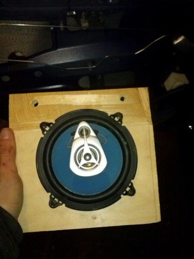 Искал в своём городе ВАЗовские проставки для задних динамиков, не нашёл. Под заказ ждать 2 недели, а музыку слушать хочется уже сейчас. Вышел из этой ситуации так : Прикрутил к листу фанеры и прикрутил фанеру к двери!