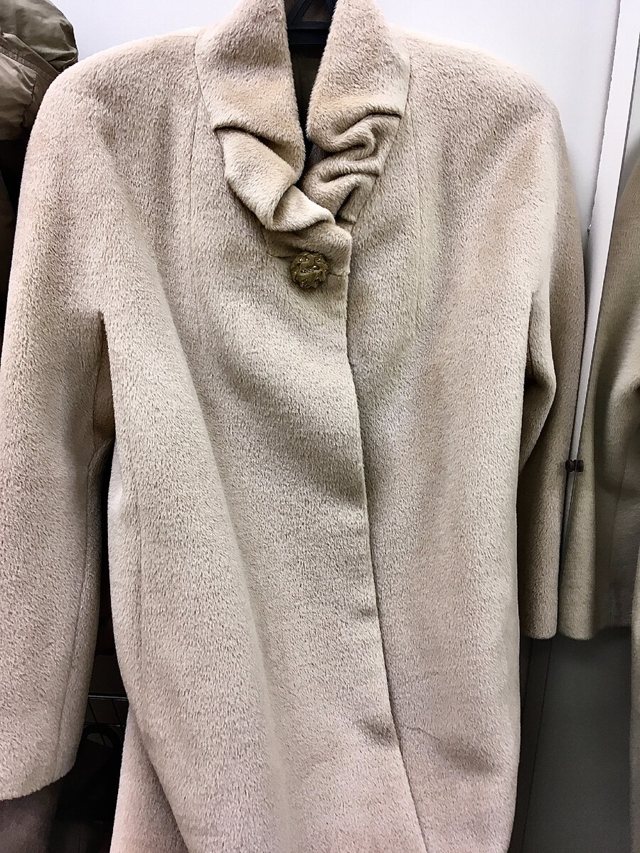 Так хочется смонтировать видео, чтобы показать вам верхнюю одежду в секонде Зигзаг Удачи в Челябинске, не получается, в субботу на новом поступлении это невозможно сделать из-за огромного количества людей в магазине, а затем все интересные модели уже раскупаются. Поэтому нашла несколько моделей пальто, покажу вам с примеркой. Как обычно, выбираю вещи только натурального состава, сегодня это в основном шерсть+ альпака. Люблю такой фасон пальто, прямое, с рукавом - реглан, светлое, ткань длинноворсовая, пальто очень тёплое и мягкое, просто прелесть. Цена на пальто подросла, уже 1500р. Несколько смущает такой присборенный ворот, в крайнем случае, можно закрыть его платком. По-моему, мне очень даже 👍 Второе пальто чёрное, состав похожий, да и фасон примерно тот же. Белое шерстяное с альпакой пальто мне мало, продемонстрировать не могу, самостоятельно прикиньте, правда, хорошенькое? Кто-то срезал пуговки. Красивое чёрное пальто шерсть с кашемиром, мне подошло, фото плохо получилось, видно