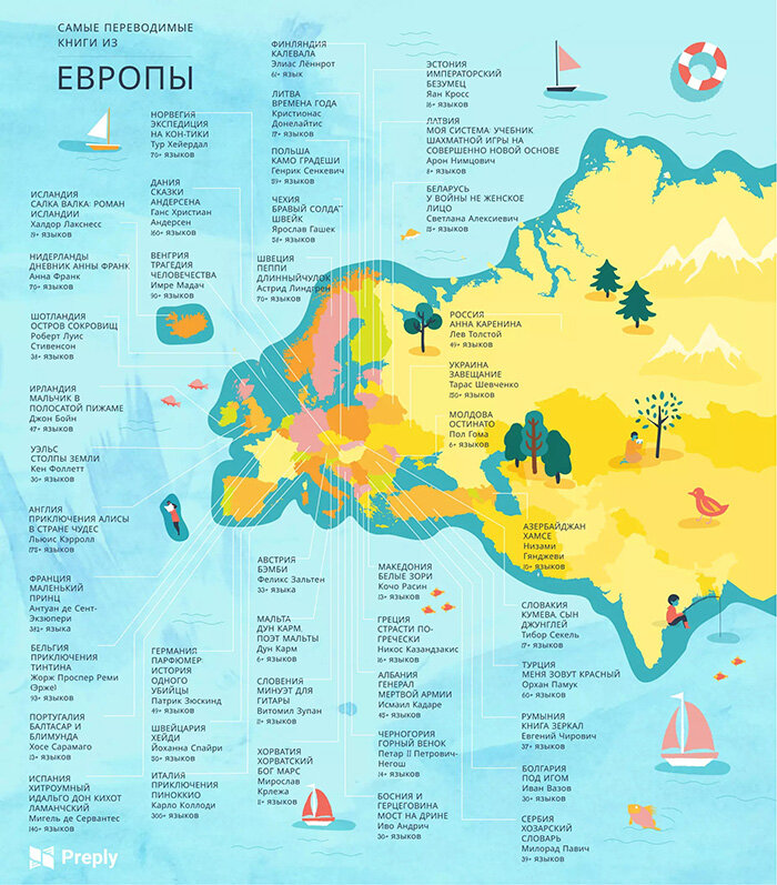 Считается, что первым в мире переводом книги на другой язык стала Септуагинта — перевод Ветхого Завета с еврейского на греческий, сделанный в Александрии за два столетия до нашей эры. С тех пор люди написали 130 миллионов книг (по подсчетам Google) и перевели многие из них на другие языки. Специалисты образовательной платформы Preply составили рейтинг самых переводимых книг из разных стран мира. Публикуем самое интересное из этого исследования. 200+ книг в библиотеке Smart Reading, которые на момент публикации не были переведены на русский язык. Многие из них, возможно, никогда на русском и не появятся. Возможность читать книги, языка оригинала которых мы не знаем, — большая ценность. Переводы делают нас людьми мира, где бы мы ни жили. Так какие же книги в мире переводили чаще всего? Как составляли рейтинг? Специалисты Preply проанализировали данные о книгах из 193 стран мира, переведенных на пять и более языков. Были использованы все доступные ресурсы (онлайн-библиотеки, энциклопедии