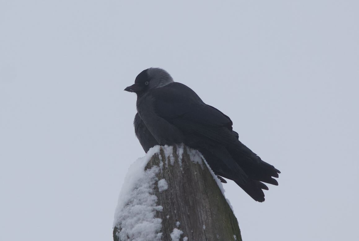 Потом мы вышли из села и некоторое время с интересом наблюдали, как вороны и галки тусуются на мелкой речке, которая из-за быстрого течения или по каким-то другим причинам не полностью замерзла. Мы долго пытались понять, чем они там занимаются, предполагали, что рыбной ловлей, но, кажется, они просто пили воду.