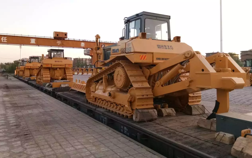 Недавно видел в одной китайской провинции, как такие вот необычные бульдозеры отправляются целыми эшелонами. Необычность тракторов видна невооружённым глазом: ведущая звёздочка у них сверху, а сами гусеницы вместе с двумя ведомыми звёздочками образуют треугольник.