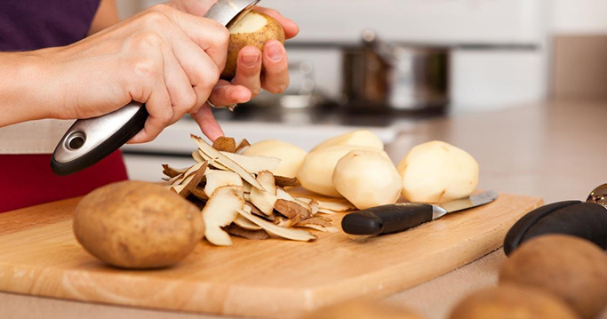 Многим людям нравится вкус молодой картошки, но вот необходимость её чистки может немного настораживать. Рассмотрим несколько способов, которые помогут справиться с этой процедурой. Нож Предварительное замачивание картофеля значительно облегчает процесс чистки - тонкая кожура легко снимается. Но, при этом, значительно пачкаются руки, которые затем не очень легко отмыть. Овощечистка Достаточно удобное приспособление, но не каждому удаётся быстро приноровиться к нему. Овощечистка может выскальзывать из рук, ранить пальцы. Металлическая тёрка Удобный и быстрый способ очистки, при котором кожура легко снимается с клубня. Правда, картофель нужно предварительно замачивать или же проводить этот процесс под струёй воды. Пшено или соль При использовании этого метода предварительно вымытый и ещё влажный картофель нужно поместить в полиэтиленовый пакет, после чего добавить в него горсть соли крупного помола. Затем завязываем пакет и трём солью клубни, которые отлично очищаются от кожуры. Вместо с
