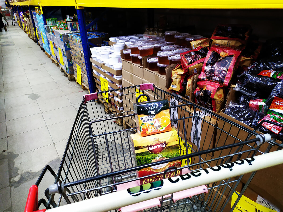 В последнее время я часто вижу статьи о крахе всяких бирж и фондов, как у нас, так и за рубежом, где все советуют купить сейчас акции Сбербанка или Газпрома. Ну, а мне, как обычному обывателю приходится инвестировать свои деньги в товары и продукты магазина "Светофор". И посетив сегодня торговые ряды этой сети, хочу предложить вашему вниманию свой небольшой обзор. И так, это город Крымск, который находится на кубани. В стальном корпусе компрессор для легковых автомобилей, с сумкой и переходниками. Цена 663 рубля. Глянцевая полироль пластика AKROSS в бутылке на 600 мл. Цена 78 рублей. Комплект двухспального постельного белья, размером 170/220 см. Цена 646 рублей. Таблетки для посудомоечной машины DiWash, в упаковке 60 штук по 20 грамм. Цена 208 рублей. Сухой корм для взрослых собак всех пород, со вкусом говядины массой 7 кг. Цена 400 рублей. Пластиковый ящик для инструментов. Цена 398 рублей. Длинный светодиодный светильник на 120 см и мощностью 40 ватт. Цена 200 рублей. Универсальный с