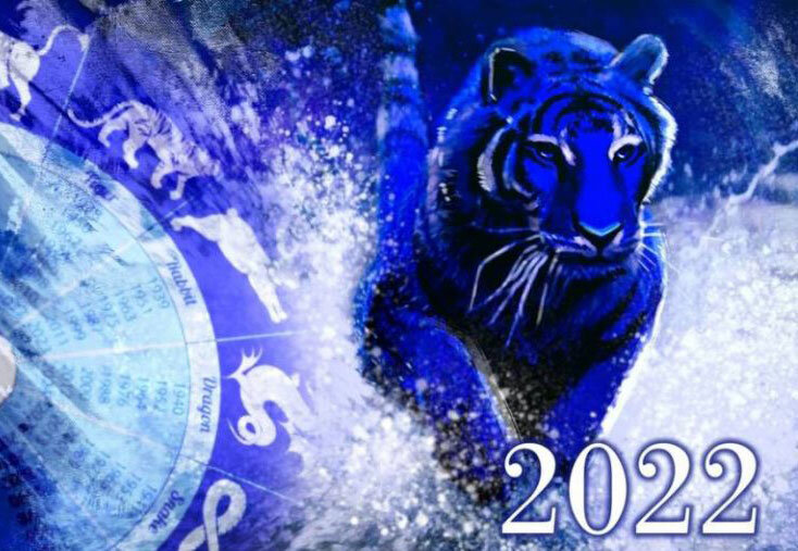 2022 год – по Китайскому гороскопу год синего Тигра. Он наступает в день второго Новолуния после зимнего солнцестояния. Стихия года – Вода, а стихия Тигра – Дерево. В Китайском гороскопе сочетание Воды и Дерева считается очень благоприятным. Вода и Дерево являются взаимно дополняющими элементами. Синий цвет окружает нашу планету оболочкой, создающей ощущение тайны. Тигр, а с Новым годом ассоциируется Амурский тигр, стремится ко всему тайному, ещё не открытому. Синий цвет – это цвет независимости, выражения уникальности и серьёзности своих намерений.