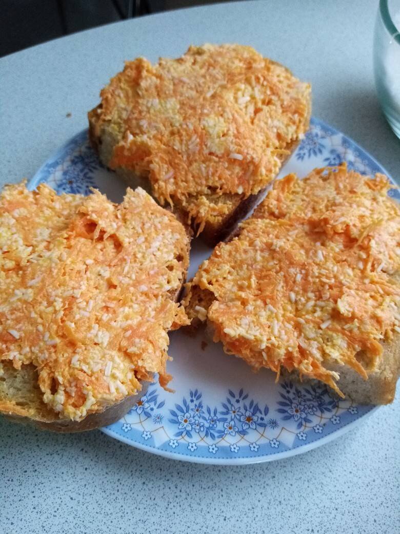 Делаются быстро, можно приготовить мин за 20 до застолья, или бутербродную массу сложить в банку и взять с собой на природу. Ингредиенты: плавленых сырка, чеснока, варёных яйца, сырые моркови, майонез Способ приготовления: Ингредиенты натереть на мелкой тёрке, заправить майонезом и намазать на булку. Можно посолить, но я не солю.