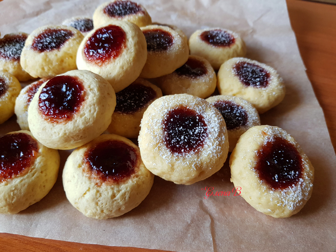 Быстрое печенье. Просто, вкусно, доступно! Очень лёгкий рецепт печенья к чаю за считанные минуты. Готовится на сковороде! Получается ароматным и рассыпчатым. Ингредиенты: муки, слив. масла, разрыхлителя, яйцо, соли, сахара, ванилин , Начинка:, Джем любой (у меня сливовый) Способ приготовления: Насыпаем в миску просеянную муку, добавляем слив. масло и перетираем руками в крошку. Добавляем ванилин и разрыхлитель, размешиваем. В отдельную миску вбиваем яйцо, добавляем соль, сахар и слегка взбиваем венчиком. Яичную массу вливаем в крошку и хорошо размешиваем руками. Замешиваем мягкое тесто. От теста отщипываем небольшие кусочки и скатываем шарики. Затем каждый шарик немного приплюснуть и сделать в нём углубление. Выкладываем на сухую сковороду, застеленную пергаментом. Каждое углубление заполняем джемом из кондитерского мешка. Сковороду накрыть крышкой и поставить на плиту на минимальный огонь на 15 минут (до лёгкого зарумянивания). Готовое печенье посыпать сахарной пудрой. Приятного чаепи