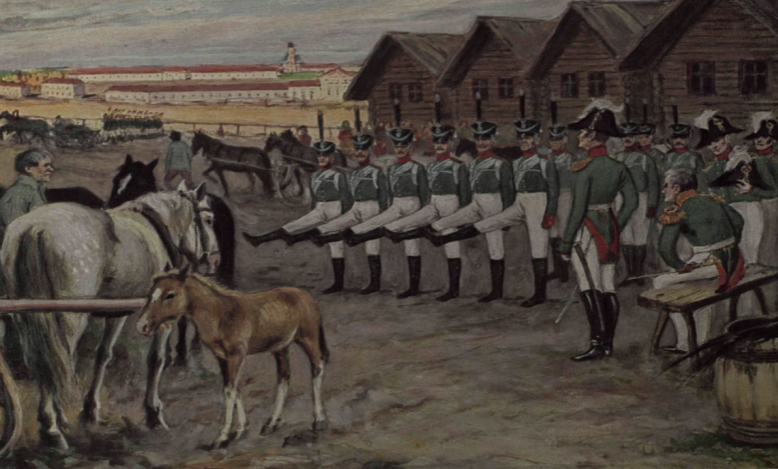 Начнем с идеи. Как я уже сказала, она пришла в голову не Аракчееву, а императору Александру I, который был особо озабочен обороноспособностью страны в эпоху наполеоновских войн. Аракчеев был в должности военного министра и поначалу не поддержал задумку, но после все же согласился организовать поселения, чтобы не утратить влияния при дворе.