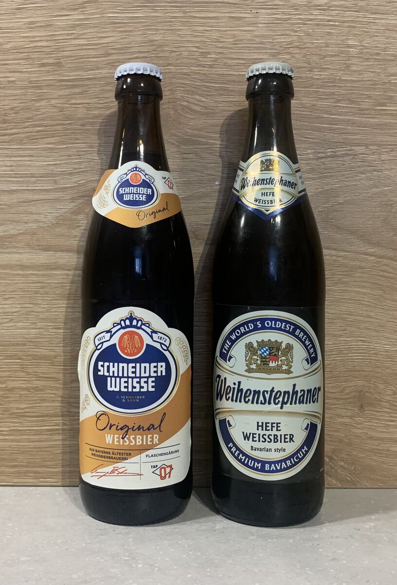 Сегодня сравним две прекрасных пшенички из Германии - Original Weissbier от Schneider Weisse, также известная как Tap07, и Hefe Weissbier от Weihenstephaner. Оба этих сорта относятся к образцам "вайсбира", немецкого пшеничного пива, в версии описания стилей BJCP 2021 года, что означает, что попробовать их "обязан" каждый, кто любит такого рода пенные напитки.