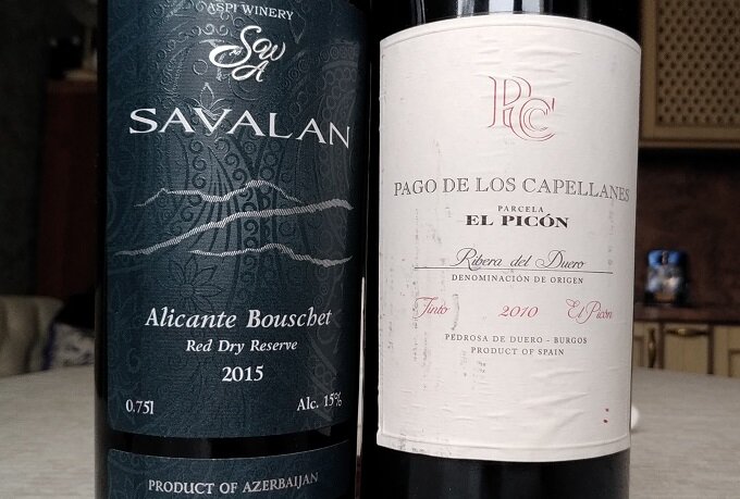 Сравнивать вина на 95+ друг с другом я не очень люблю. А если пить одно такое вино, то я могу не полностью его прочувствовать. Нужно вино для контраста, но хорошее и недорогое одновременно. Выбрал Savalan от Aspi Winery, азербайджанское вино. Вино проверенное, марку я уже пил, был доволен. Сорт аликанте буше 2015 года урожая, розлив был в октябре 2018 года. Цена 1,2 тысячи. Не, ну конечно, не за 300 рублей же вино брать в качестве базы. Надо какое-то действительно неплохое.