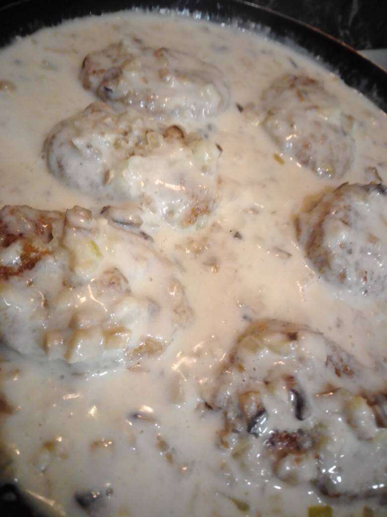 В моей семье не любят" сухих "блюд. Просят кетчуп, майонез... А это не самые полезные продукты. Поэтому стараюсь чаще готовить сама различные соусы и подливы для мяса и рыбы. Вот сегодня подлива из грибов для котлет. Ингредиенты: шампиньонов, репчатого лука, Масло растительное для жарки, муки, Мясного или грибного бульона. Можно бульонные кубики, Соль, перец, ваши любимые специи, сметаны Способ приготовления: Репчатый лук порезать небольшими кубиками. И отправляем жарить на растительном масле, на сковороду, на медленный огонь. Жарим 5 минут. Шампиньоны ополоснуть, обсушить с помощью бумажных полотенец. Порезать на небольшие кусочки и отправить к луку на сковороду. Продолжаем жарить вместе. Как только жидкость от грибов выпариться, добавим пару столовых ложек муки, продолжаем жарить, хорошо перемешивая. Примерно 5 минут. На этом этапе добавляем соль и перец. Можно также ваши любимые специи. Не убирая с огня добавляем сметану и хорошо перемешиваем. Если у вас есть готовый бульон мясной и