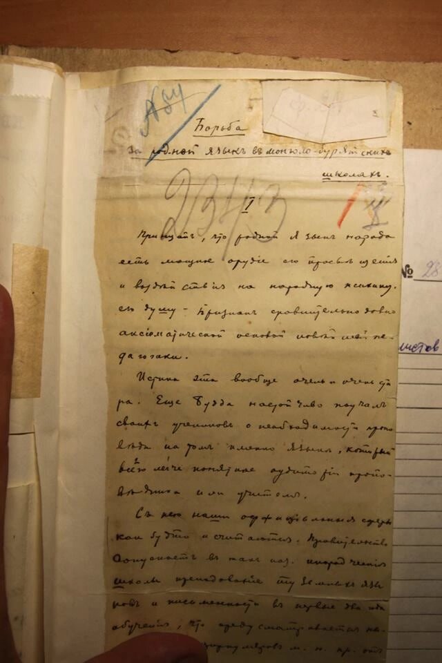И вот в 2018 году был опубликован очень интересный документ более столетней давности о борьбе за существование бурятского языка в царской России, принадлежащий перу Э-Д. Ринчино. В предисловии своего поста блогер Chono Erdenebayar написал, что «по работе искал информацию в архиве и случайно наткнулся на документ в папке, датированной 1910-1913 годами: «Э-Д. Ринчино. Борьба за родной язык в монголо-бурятских школах».