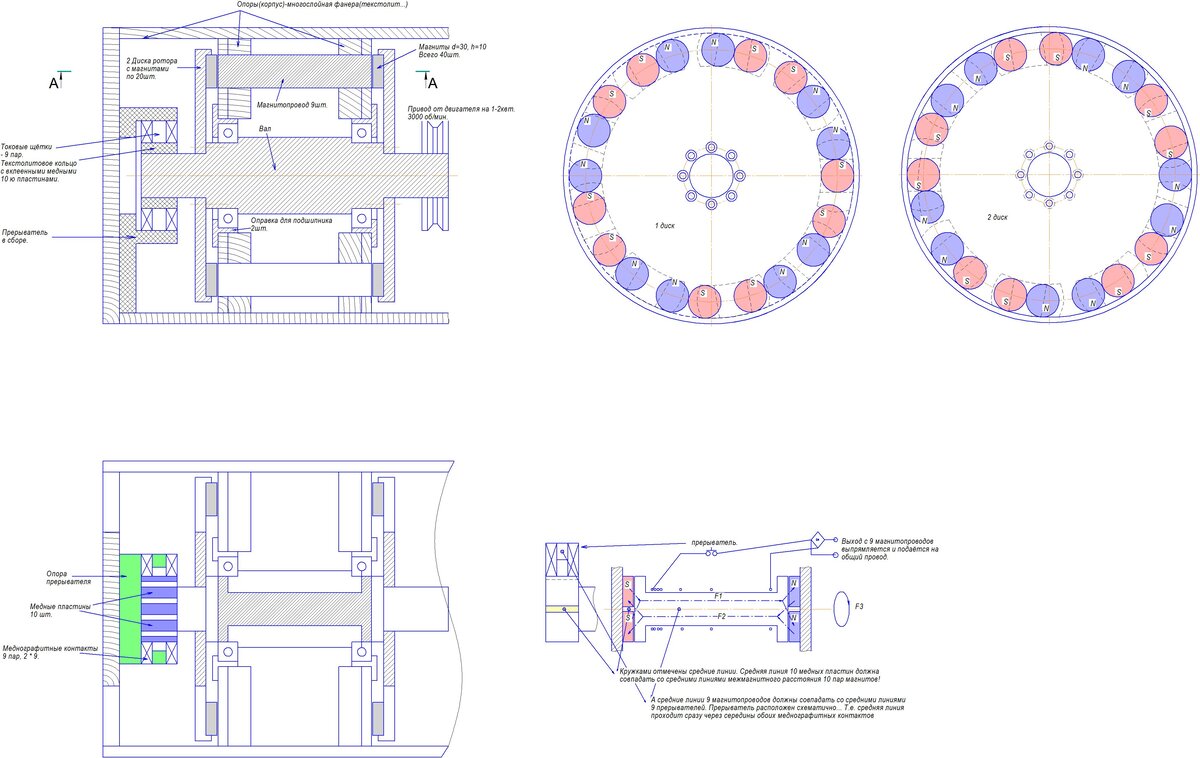 Предлагаю к вниманию схему бестопливного генератора на неодимовых магнитах. Все желающие могут себе такой сделать. Правда это не совсем просто, но все у кого руки на месте вполне могут себе такое соорудить. и пользоваться этим устройством с целью экономии или полностью перейти на самообеспечение. Прилагаю простенький эскиз устройства. Кому бедт непонятно что-то можно уточнять. В принципе принципиально ничего сложного нет... Есть сложности чисто технического плана. Т.е. непосредственно изготовление. Если будет интерес спрашивайте...