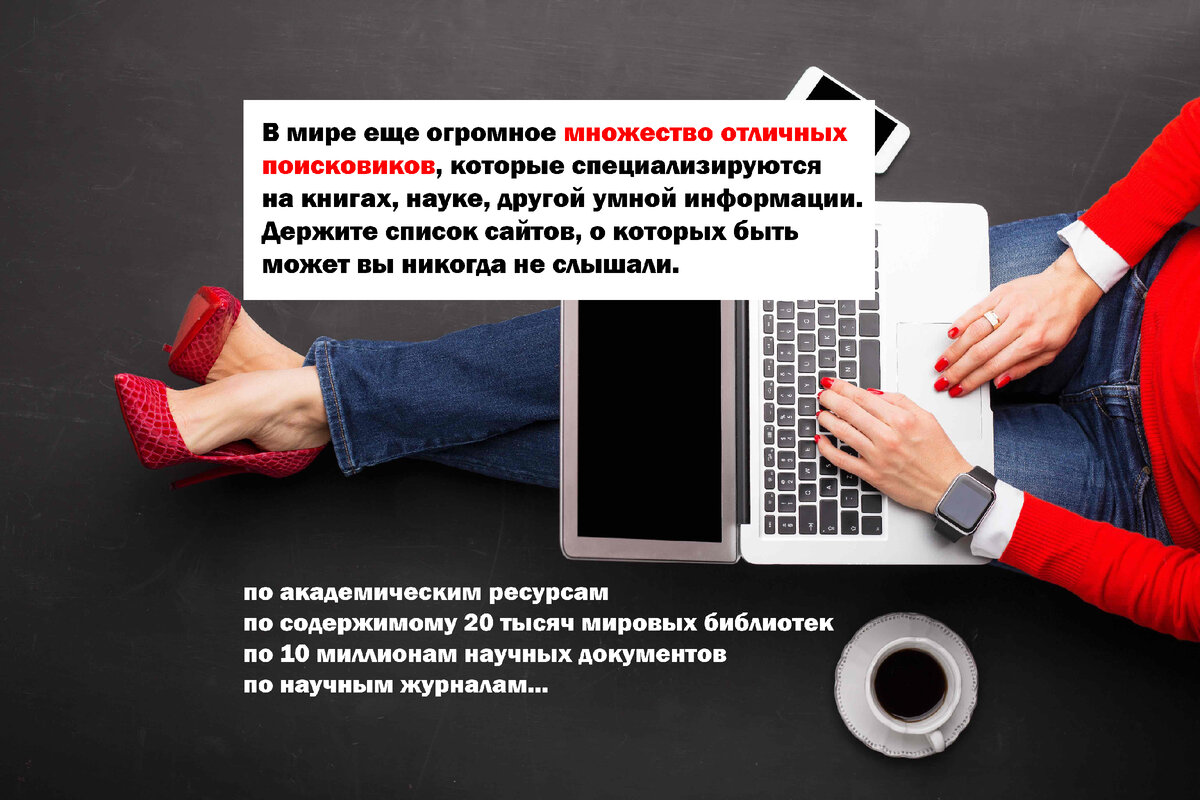 О существовании большинства поисковых систем мы просто не подозреваем. Тем временем, в мире еще огромное множество отличных поисковиков, которые специализируются на книгах, науке, другой умной информации. Держите список сайтов, о которых быть может вы никогда не слышали. _________ www.refseek.com – поисковик по академическим ресурсам. Более миллиарда источников: энциклопедии, монографии, журналы. www.worldcat.org – поиск по содержимому 20 тысяч мировых библиотек. Узнаете, где лежит ближайшая нужная вам редкая книга. https://link.springer.com – доступ к более чем 10 миллионам научных документов: книги, статьи, протоколы исследований. www.bioline.org.br – библиотека научных журналов по bioscience, издаваемых в развивающихся странах. http://repec.org – добровольцы из 102 стран собрали почти 4 миллиона публикаций по экономике и смежным наукам. www.science.gov – американский государственный поисковик по 2200+ научным сайтам. Индексируются более 200 миллионов статей. www.pdfdrive.com – кру