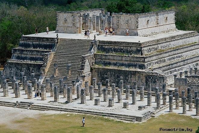 Недалеко от пирамиды Кукулькана в Чичен-ице в Мексике стоит полуразрушенный Храм Воинов. Это пятиступенчатая пирамида, окруженная рядами колонн. Это храм – полная копия пирамиды в Толлане, только меньше – 11,5 метров.
