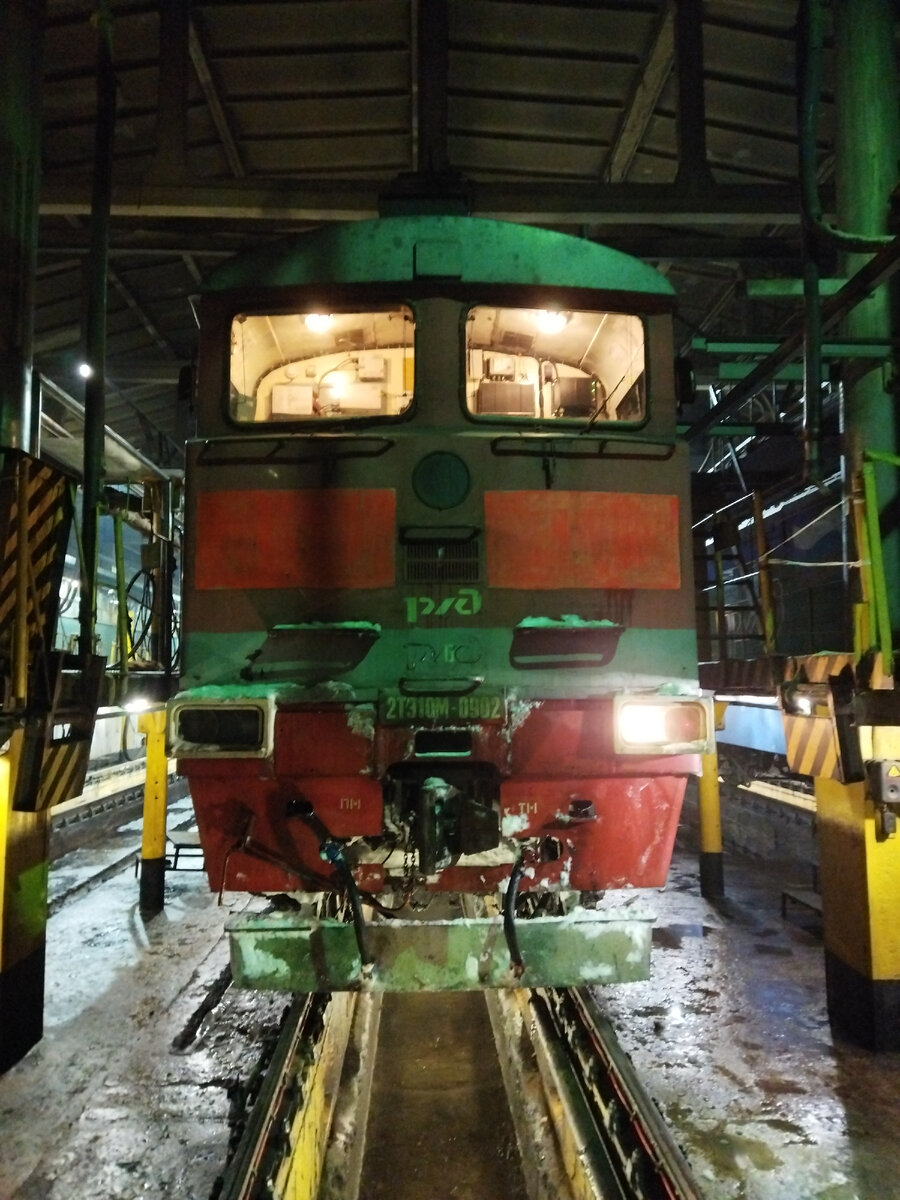 Магистральный тепловоз. Двухсекционный выпускался с 1979 по 1990 годы. Эти машины эксплуатируются до сих пор, перевозят пассажиров и грузы. Он точно не пройдет тест на экологические нормы по выбросам CO, но на это не обращает никто внимание. Когда этот локомотив тащит за собой пассажирские вагоны, то минимум три вагона позади него задыхаются угарными газами. Эта кабина управления тепловозом. Рабочее место машиниста. В большинстве случаев кресло машиниста сломано или оторвано от креплений. Я даже встречал кресло которое стояло на кирпичах.