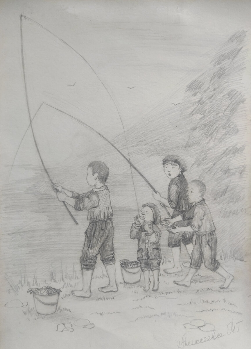 Пошли мы как-то вчетвером на рыбалку. Обязанности наши давно были распределены, закреплены твёрдой рукой старших братьев, и никаких изменений не предвиделось. Пётр и Гриша, как добытчики сидели, закидывали удочки и выдёргивали рыбу. Наше с Мишей дело заключалось в том, что мы снимали с крючка рыбу, насаживали свежего червя, не забыв поплевать «на удачу», нанизывали пойманную рыбу на длинную очищенную от листьев ивовую ветку, отвечая головой за сохранность улова. Но Мише было мало просто поплевать на червя, его возмущало то, что рыба будет глотать таких грязных, испачканных в земле червей, и после этого мы должны будем ту рыбу есть. Чтобы не допустить этого, он перед тем, как насадить червя, взяв его за один конец, брал в рот и, сжав губы, протягивал, снимая грязь, и затем сплевывал. Как-то раз, уже насадив червяка на крючок, Миша испачкал его и решил очистить прямо на крючке. Гриша же, не поняв его намерений, взмахнул удочкой и крючок полетел в воду, но поймал братишку. Крючок, проткнув щеку Миши крепко застрял там, наружу торчало остриё крючка с жалом.