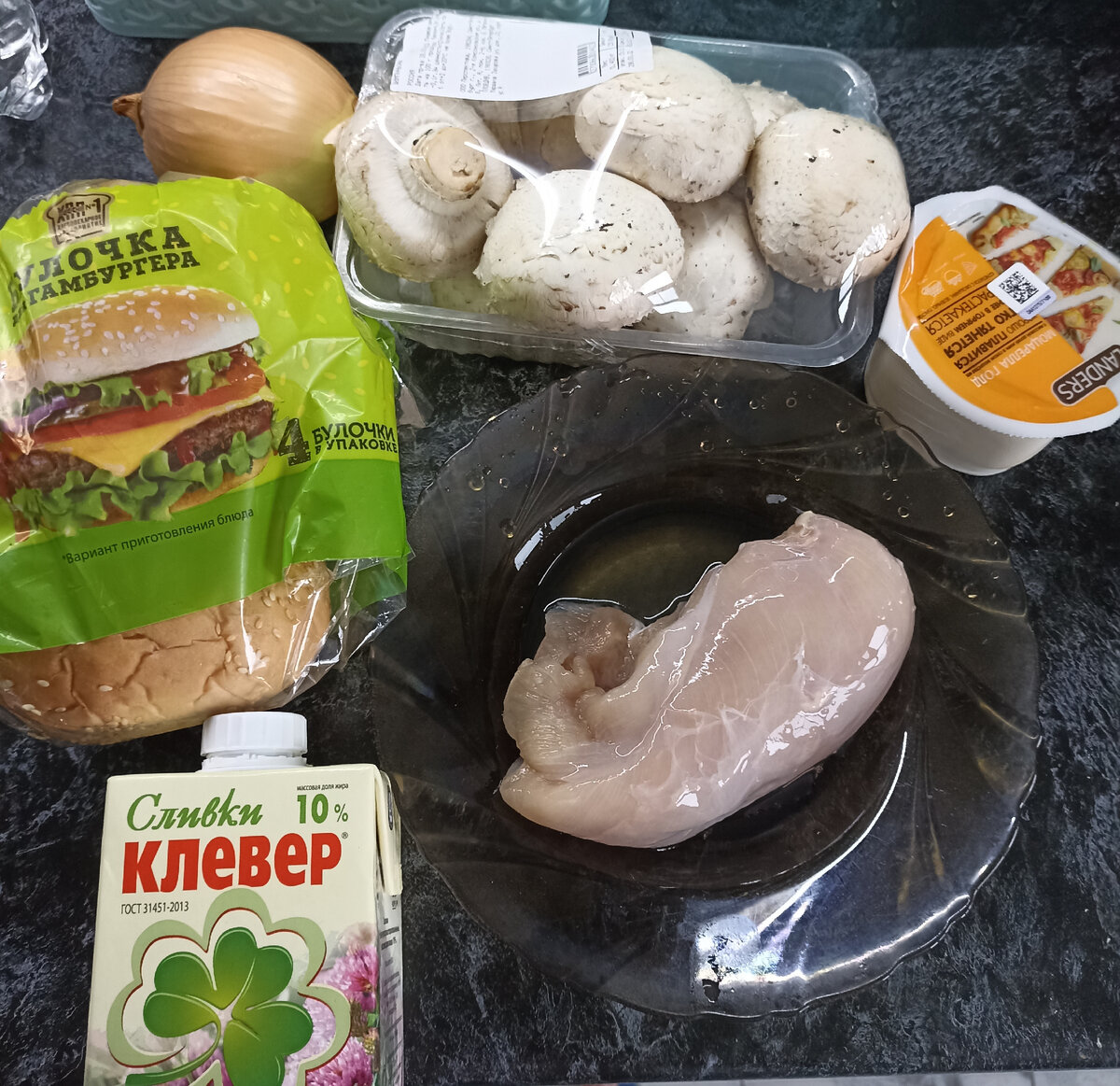 Жульен в булочке Ингредиенты: Булочки для гамбурга 6шт Куриная грудка 1 шт (кто любит более мясной жульен, лучше тогда 2) Грибы шампиньоны 400 гр Сливки примерно150мл Сыр 200 гр Лук 1 шт Масло сливочное для жарки Соль, перец по вкусу У меня булочек получилось 5, одну съела дочка) Наши хрустящие булочки с жульеном готовы Приятного аппетита!