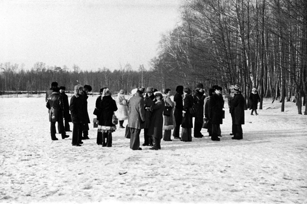 На Измайловском поле 13 марта 1976 г. произошел аналогичный перфоманс. Художники вышли из леса, перешли поляну и вручили людям справки о произошедшем. Художники пояснили это так: «Мы постепенно вывели предмет восприятия из невидимости - через зону неотличения - в зону различимости, которая находится на эмпирическом плане демонстрационного пространства». И если перевести это послание на понятный язык, то оно означает, что художники появились, а зрители к ним пришли. Событие под названием «появление» официально произошло. Вообще, в те годы он был одним из первых советских перфомансов. И это неудивительно, ведь в СССР не принято жаловаться, а значит, можно использовать против жалобщика. Но самые смелые шли в лес. Например, некоторые из них забрались в подмосковный лес и растянули 10 метровое полотно: «Я ни на что не сетую и мне все нравится, несмотря на это, я здесь никогда не был и не имею представления о здешних местах». Ни к чему придраться нельзя! В СССР было столько всего, что даже