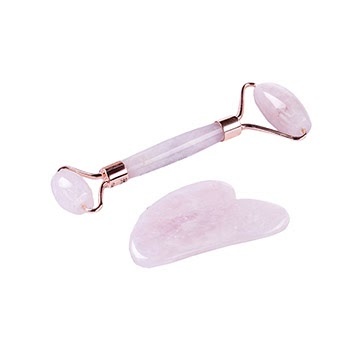 Salt of the Earth Набор: скребок гуаша (сердце) и роллер - розовый кварц