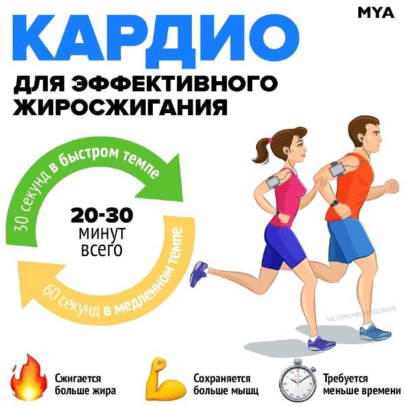 Здоровое и красивое тело мало кому достается от природы, поэтому большинству приходится работать и прикладывать много усилий, чтобы выглядеть так, как хочется, и чувствовать себя выносливым и энергичным. Кому-то не хватает рельефа, кто-то хочет избавиться от лишних килограммов, которые мешают быть полностью уверенным в себе. Самый проверенный и лучший способ сбросить вес – это тренировка кардио для сжигания жира. Правильное питание, конечно, тоже дает отличный итог, но в сочетании с оптимальной программой упражнений сроки похудения сократятся в несколько раз. Кардионагрузка – это аэробная нагрузка на организм, которая приводит к ускорению частоты сердцебиения, учащению пульса и, как следствие, улучшению метаболизма и избавлению от жировых отложений. Главным источником энергии в таких занятиях является кислород, который насыщает каждую клетку организма. Комплекс снижает уровень холестерина в крови, положительно сказывается на тонусе и повышает выносливость. Многие фитнес-инструкторы сч