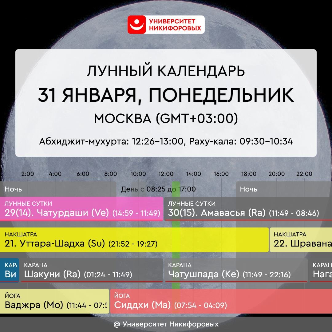 Этот день, как и вчерашний, не сопутствует новым начинаниям, важным свершениям. Сосредоточьтесь на обычных профессиональных или бытовых задачах, в спокойном темпе продолжайте начатое ранее. Сегодня хорошо подводить итоги за прошедший месяц, анализируя, что получилось, а что не получилось, но без агрессии на себя — просто констатация фактов. Это поможет отследить текущее положение дел. Планированием на следующий месяц пока заниматься не стоит. После 12:00мск наступает мощное время для Родовых практик, для выражения почтения Роду: зажгите свечу и с благодарностью подумайте о своих многочисленных предках, которые всегда незримо стоят за вашей спиной и являются вашей опорой и поддержкой. Неблагоприятно: подстригать волосы и ногти, начинать путешествие, надевать новую одежду, давать и брать деньги в долг.