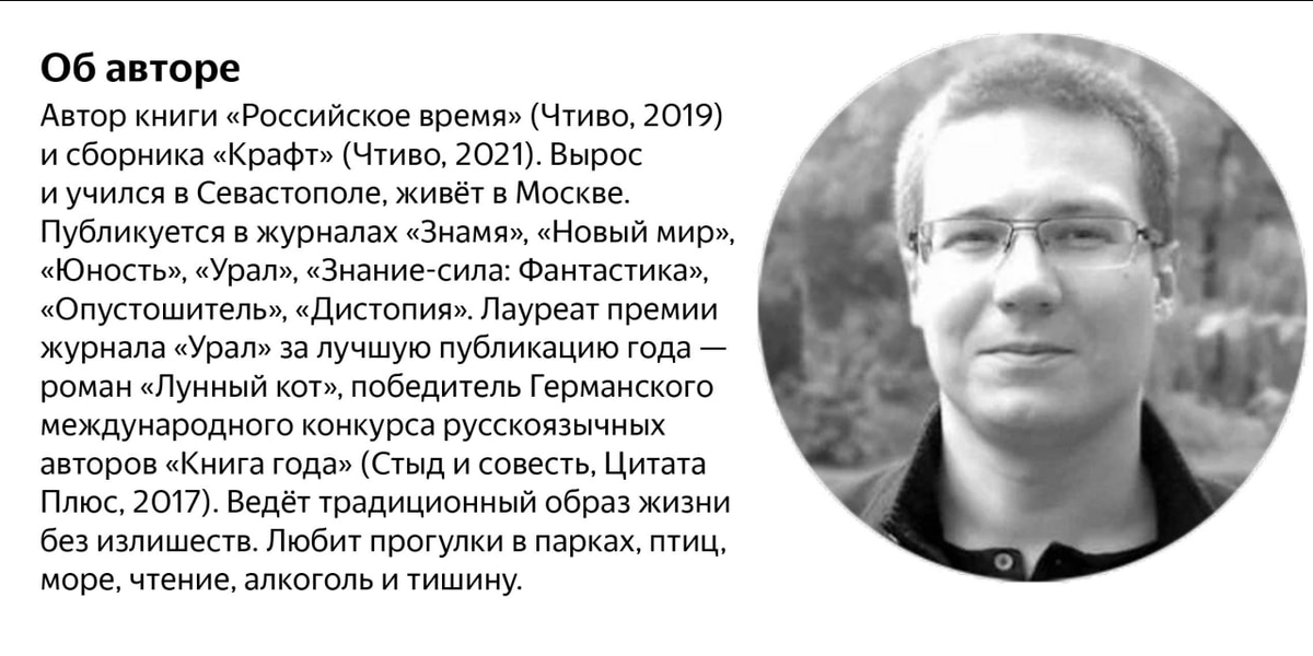 «Промсвязьбанк», «Михаил Посохин, спроектировал Новый Арбат», «Кредит» — так и лезло в глаза мужчине за тридцать. Он посмотрел на другую сторону улицы. «Сбербанк», «Тарантино», «Сбербанк», «Бургер Кинг». Прошёл ещё немного. Увидел вывеску «Помощь» (в скобках — «страховая группа»). Возле входа плёлся сухой старик-татарин с двумя большими канистрами, полными водой.