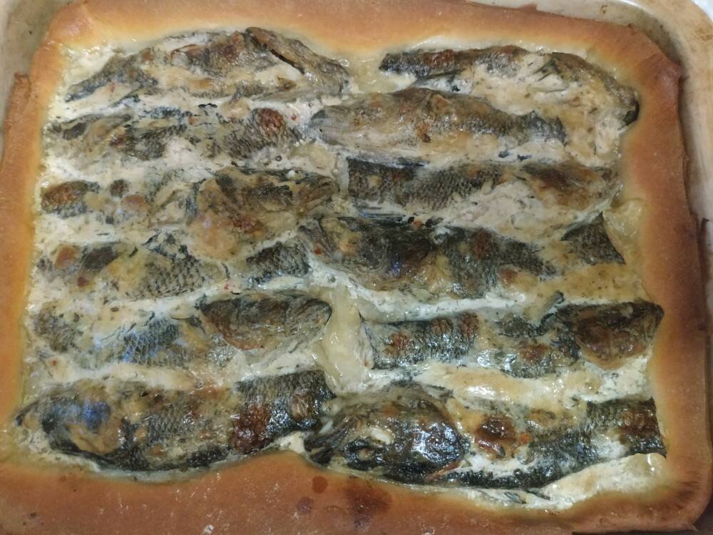 #пирог У меня на этот раз пирог с ротаном. Очень люблю эту рыбку! Самая вкусная для меня, как и бычки! Ингредиенты: Тесто дрожжевое, Рыба свежая, Лук репчатый, Майонез, Специи для рыбы, Раст.масло Способ приготовления: Можно готовить из любой рыбы. Главное, чтобы не очень жирная и костлявая была. Можно купить рыбное филе. Рыбу почистить и промыть. Ротаны небольшие, поэтому не режу их. Головы тоже не убрала. Некоторые их любят обсасывать. Посыпать рыбу специями для рыбы и перемешать с майонезом. Лук нарезать полу или четвертькольцами и потомить с раст.маслом. тесто раскатать, выложить на смазанный маслом противень. Сверху выложить горячий лук. На лук выложить замаринованную с майонезом рыбу. Поставить в духовку минут на 25-30.