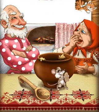 Жили-были старик со старухой. Ленивые-преленивые. Один на другого всякую работу перекидывали. Надо избу к ночи на крюк запереть – у них спор. — Тебе запирать. — Нет, тебе. Отпирать поутру – опять спор. — Тебе отпирать. — Нет, тебе. Я вчера запирала. Вот раз надумали они кашу сварить. После споров да раздоров сварила старуха горшок каши. Сели они, съели кашу, надо бы горшок мыть. Принялись старик со старухой опять спорить. Старуха говорит. — Я кашу варила, а тебе горшок мыть. — Нет, — говорит старик. Раз ты варила – тебе и мыть. А я никогда в жизни горшки не мыл и мыть не буду. — А я сто раз мыло, больше не хочу. — Экая ты упрямая да ленивая. — Сам таков. Спорили-спорили, ни один не желает горшок мыть. Остался горшок не мытый. Глянул на него старик и говорит. — Старуха, а старуха. — Чего тебе? — А ведь горшок-то не мытый. — Возьми да вымой. — Сказал я тебе, не моё это дело. — И я тебе сказала — не моё. И давай опять спорить да браниться. Устал старик спорить и говорит. — Вот что я наду
