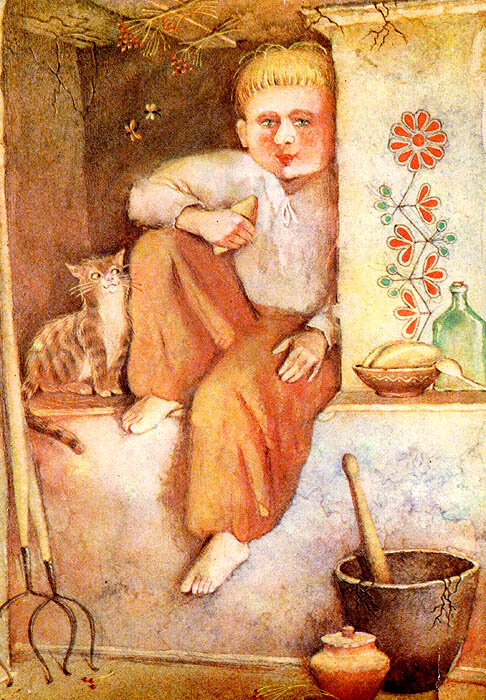 Побил его отец и отдал портному в ученье. Так он и оттуда убежал. Его и кузнецу отдавали, и сапожнику — толку мало: опять прибежит, да и на печь! Что делать?