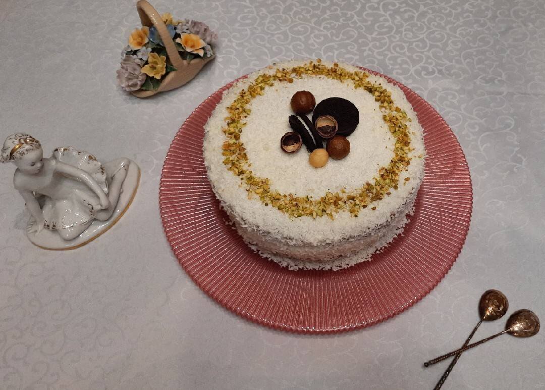Торт "Рафаелло" с вишневым желе и сливочным муссом