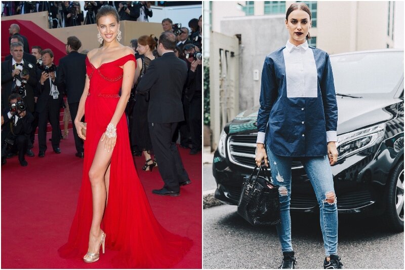 Мы все любим восхищаться тем, как великолепно, красиво и стильно выглядят знаменитости на красной дорожке, но это не совсем так, как они выглядят в реальной жизни. Они не только не выглядят так круглосуточно (потому что никто так не выглядит, это невозможно), они даже не выглядят так, когда выходят в свет, чтобы выпить кофе или встретиться с друзьями. То, как они выглядят на красной дорожке, в большей степени связано с их стилистами, визажистами, модельерами, которые предоставляют им платья. Это сочетание всех этих вещей, общей тематики мероприятия, на котором они присутствуют, и требований дресс-кода, которым они должны соответствовать. В реальной жизни их чувство стиля часто сильно отличается от тех образов, которые они создают на красной дорожке. Давайте посмотрим, насколько эти 15 знаменитостей отличаются друг от друга на красной дорожке и в реальной жизни. 1. Ирина Шейк Эта русская модель выглядит как королева красной дорожки в этом красивом красном платье с длинным разрезом по б