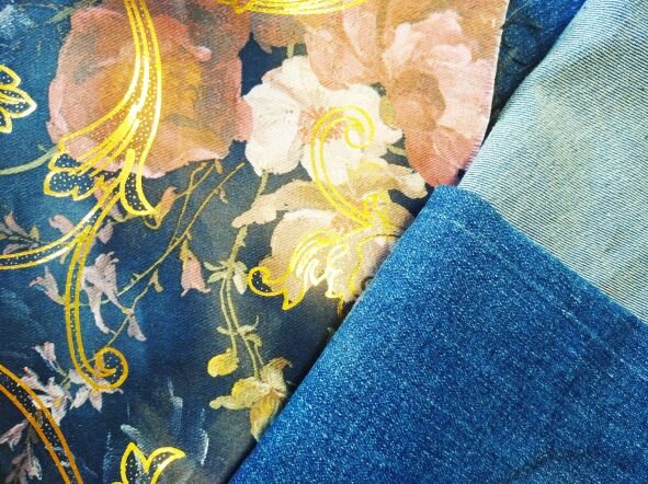 У каждой женщины есть косметичка, и как правило не одна. У меня несколько косметичек и они все небольшого размера. Я хочу сшить косметичку большую (объемную), чтобы в ней поместились не только туш и помада, но и флакончики побольше (тоник, молочко, крем). Косметичку буду шить не только большую, но и яркую (красивую). У меня есть лоскут портьерной ткани темно синего цвета с розовыми цветами и золотистыми завитками. Хочу ее скомбинировать с моей любимой джинсой. Выкраиваю из портьерной ткани два прямоугольника 27х22 см. Из флизелина выкраиваю два прямоугольника размером 25х20 см. Для верхней части косметички выкраиваю из джинсы две полоски 47х7 см., и две детали из флизелина размером 45х5 см. Для нижней части косметички крою прямоугольник размером 47х13 см. Дублировать и делать стежку на донышке хочу с ватином. Крою ватин 45х11 см. Складываю портьерную ткань с флизелином и понимаю, что мне хочется у косметички большего объема. Дополнительно еще вырезаю две детали из синтепона размеро