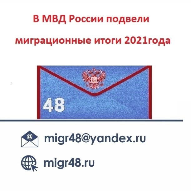 ТОП-5 показателей выглядит следующим образом: РВП. Всего выдано 167 596 разрешений: 1. Таджикистан – 43 342 разрешения (25,9%). 2. Казахстан – 31 788 разрешений (19%). 3. Украина – 27 927 разрешений (16,7%). 4. Узбекистан – 14 693 разрешения (8,8%). 5. Армения – 11 720 разрешений (7%). ВНЖ. Всего выдано 248 270 видов: 1. Таджикистан – 57 444 вида (23,1%). 2. Украина – 35 949 видов (14,5%). 3. Казахстан – 27 406 видов (11%). 4. Узбекистан – 23 817 видов (9,6%). 5. Армения – 23 511 видов (9,5%). Гражданство. Всего принято в гражданство 735 385 человек: 1. Украина – 375 989 человек (51,1%). 2. Таджикистан – 103 681 человек (14,1%). 3. Казахстан – 49 862 человека (6,8%). 4. Армения – 46 931 человек (6,4%). 5. Узбекистан – 31 867 человек (4,3%). Если сравнивать статистику за 2020 и 2021 годы, то можно заметить, что количество, выданных РВП увеличилось почти на 42 тыс. (33%). С распределением по странам тройка лидеров сохранилась, при этом количество выданных гражд