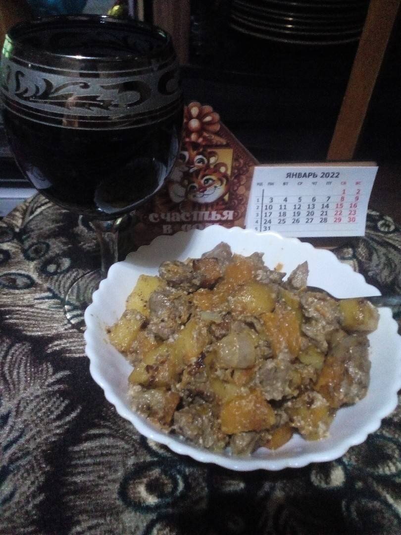 #кукпад4 Вкусное, быстрое и не избитое блюдо Ингредиенты: Тыква, Печень, Растительное масло, Сметана, Лук, Морковь Способ приготовления: Печень обрезать от пленок, нарезать кубиком, промыть. Лук почистить, помыть, нарезать кубиком. Морковь почистить, помыть, натереть на крупной терке или взять замороженную. Картофель почистить, помыть, нарезать кубиком. Тыкву почистить, помыть, нарезать кубиком. Тыкву, картофель, морковь и лук обжарить на растительном масле. Печень обжарить на растительном масле. Добавить печень к овощам, добавить сметану и протушить под крышкой до готовности. Добавить соль и специи по вкусу. Приятного аппетита. Буду рада видеть Ваш отзыв и Вас моим подписчиком, если понравился рецепт
