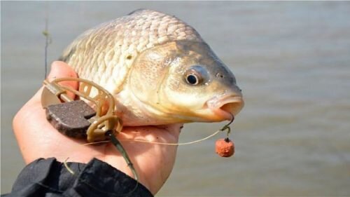 Донная ловля – отличный вариант для охоты за карасем на дальней дистанции, а также для рыбалки на течении. Снасти для ловли карася в феврале на фидер Лучший вариант – использовать для ловли карася фидеры и пикеры. Эти современные снасти обеспечивают отличные уловы, оставляя позади традиционные донки. Для карасевой рыбалки в феврале оптимальными оказываются обычно довольно легкие фидеры, с тестом до 40-60 г, редко больше, и пикеры. Вероятность, что придется ловить на сильном или хотя бы среднем течении, невелика, поэтому такие снасти хорошо подходят наилучшим образом. Оптимальная длина удилища – 3,6-3,9 м. Его надо оснастить безынерционной катушкой размером порядка 2500-3000. Из лесок лучше всего подойдет плетенка диаметром около 0,12-0,14 мм. Можно использовать и монофил аналогичной разрывной нагрузки. Но из-за своей растяжимости он не обеспечит снасти такой высокой чувствительности, как шнур. Между тем при ловле в феврале, для которого характерна низкая активность карася, очень важна