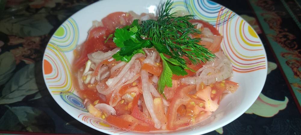 #поваротбога #салат Это самый быстрый салат! Готовится легко и очень вкусный. В основном для мясных блюд. Наша семья его очень любит, его делала всегда моя бабушка. Все начинают в нём искать какой-то особый ингредиент, а его там просто нет, одна соль и то немного. Когда летом свои мясистые помидоры, то соли практически и добавлять не нужно. Ингредиенты: большая луковица, помидора, соль Способ приготовления: Маленько режем лук полукольцами. Чем мельче, тем лучше. Солим лук и мнем немного руками, но не сильно. Режем тонко помидоры, полукольцами и добавляем к луку. Теперь перемешиваем всё руками. Наш салат готов! Приятного аппетита!