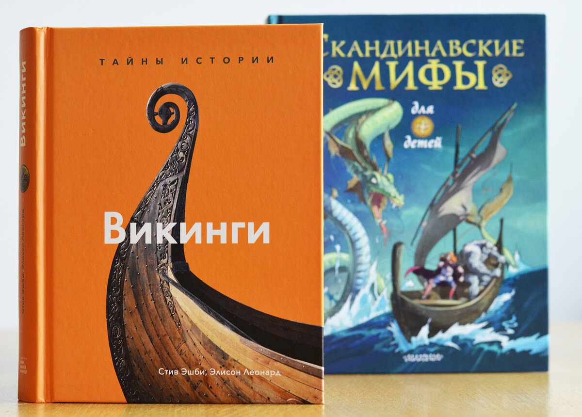Моя дочка очень любит читать всевозможные мифы и легенды. По этим темам у нас очень много книг. Есть как сборники по всему земному шару, так и по отдельным регионам. Это могут быть как совсем детские издания, так и иллюстрированные справочники, и серьезные энциклопедии. Когда-то мы читали с дочкой «Скандинавские мифы для детей» издательства «Малыш» в пересказе Алекса Фрайта и Луи Стоуэлла. Хитрый Локи, сильный Тор, красавица Фрейя, гномы, великаны, эльфы – ребенок увлеченно слушал про их приключения. Чтобы поддержать интерес дочки, летом мы сходили в Исторический музей на небольшую, но очень насыщенную выставку «Викинги. Путь на восток». Посмотрели одежду, украшения, предметы быта, монеты, оружие. Одно дело читать, совсем другое – увидеть своими глазами. Сейчас в качестве продолжения изучения истории викингов я показываю фотографии и читаю дочке книгу издательства «Манн, Иванов и Фербер» «Викинги. Тайны истории» Стива Эшби и Элисон Леонард. Это совсем не детская книга. Точнее сказать -