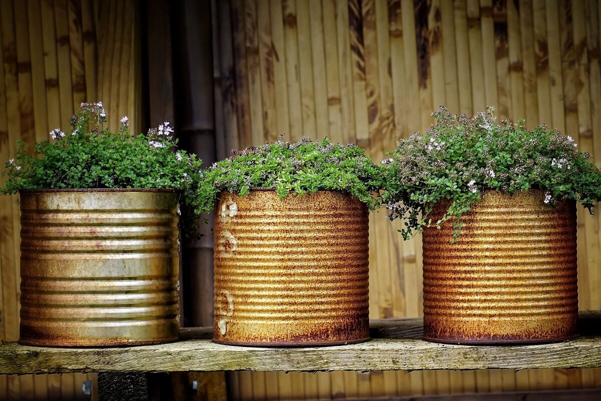Жестяные банки — это не только отличная емкость для продуктов, позволяющая продлить им жизнь. Они могут стать уникальными элементами декора, подчеркивающими характеры жителей дома. Цветочные горшки Жестяные банки отлично подойдут для поддержания влаги у неприхотливых растений. Вы можете раскрасить их по своему вкусу или просто очистить от бумаги и клея, сохранив благородные переливы. Их можно просто поставить или создать подвесную конструкцию с помощью веревок. Хранение мелочей Если в доме есть ребенок, его канцтовары могут отлично разместиться в нескольких цветных железных баночках. Также они подойдут для хранения различных заколок и резинок или зубных щеток в ванной комнате. На кухне они могут пригодиться в качестве подставки для столовых приборов. Светильник Превращение жестяных банок в оригинальные светильники в стиле стимпанк может стать вариантом досуга в кругу близких людей. Дайте волю фантазии, экспериментируйте с формами и узорами будущих уникальных украшений. Для вырезания о