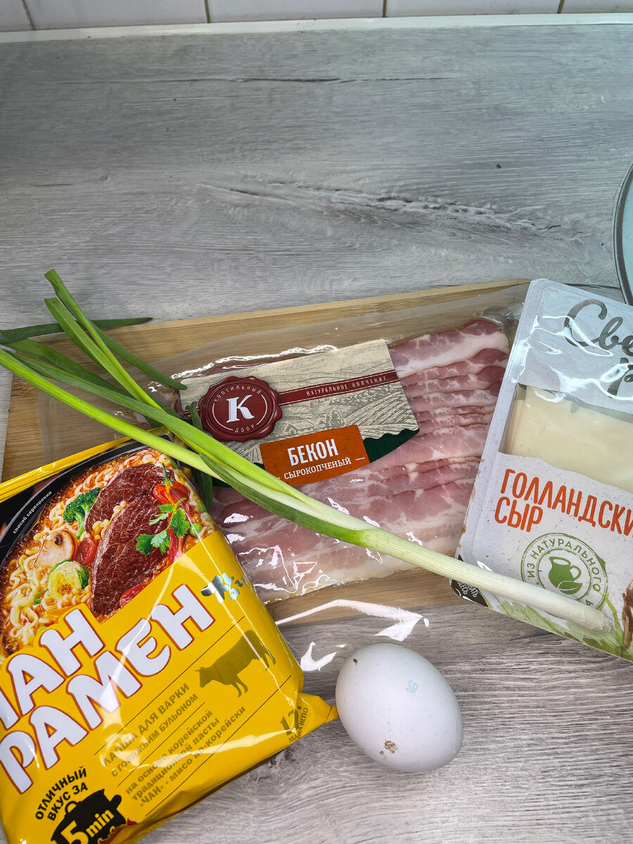 С этим легким быстрым а главное вкусным рецептом я познакомился пару месяцев назад в южной Корее в одной из уличных забегаловок! И так нам понадобятся: 1.Лапша рамен у меня это дошик))) 2.Одно яйцо 🥚 3.Зелёный лук 4.Бекон 5.2 ломтика сыра Первым делом нарезаем бекон и отправляем в сковородку обжариваем одну минуту и добавляем 300 мл воды Достаём пакетики с переправой заправляем наш бульон так как у наша лапша будет не жидкая пакетик со специями высыпаем на половину Как только наш бульон закипел отправляем лапшу Варим по одной минуте с каждой стороны кладём два ломтика сыра и одно яичко закрываем крышкой и тушим одну минуту Далее посыпаем нарезанным зелёным луком щепотка чёрного перца и подаём прямо на сковороде Надеюсь вам понравился мой рецепт ВСЕМ ПРИЯТНОГО АППЕТИТА 😋 Кстати всем привет из Корее 👋