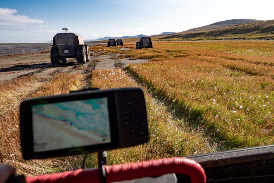 Зимой также происходит заброска топлива. Летом — разведка, в два вездехода. Для работы с маршрутом используются защищенные ноутбуки Panasonic. В каждом вездеходе — навигаторы Garmin GPSMap 276CX с загруженными дополнительными картами. Трек пишется несколькими устройствами (GPS-навигаторы + отдельные трекеры).