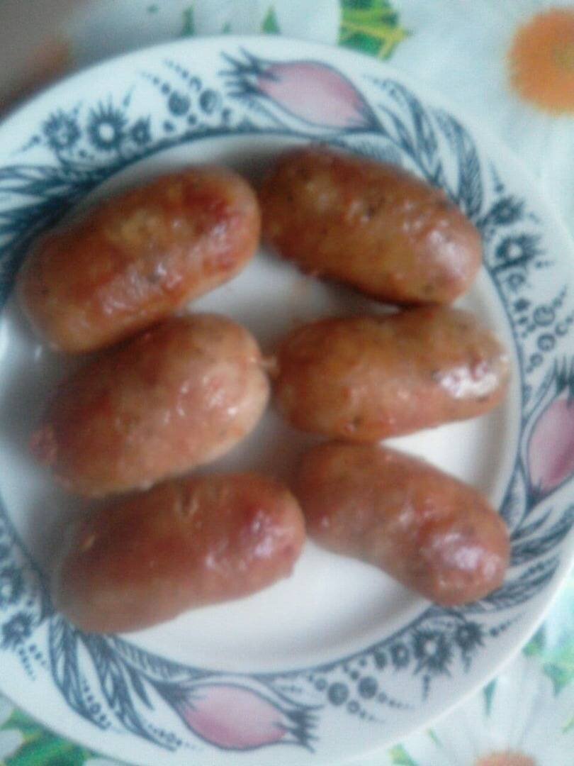 Какой бы не была вкусной колбаса из магазина домашние колбаски всегда вкуснее. Я люблю свинину в любом виде, поэтому колбаски приготовила из этого мяса. Черева (кишки) для колбасок я купила готовые. Колбаски сделала небольшими, так удобнее приготовить и использовать на порции. Ингредиенты: свинины (мякоть), воды, соли, специи для мяса (у меня сушеный чеснок и смесь перцев), черева (кишки) свиные, растительное масло для жарки Способ приготовления: Мясо нарезать небольшими кусочками и 2 раза перемолоть на мясорубке. Добавить в фарш соль, специи и воду и хорошо вымесить. При помощи мясорубки набить фарш в череву. На разогретое растительное масло выложить колбаски, проткнуть их в 2-3 местах зубочисткой, накрыть сковороду крышкой и жарить на среднем огне с двух сторон до золотистой корочки. Проверить готовность колбасок можно проткнув их зубочисткой, если не вытекает жидкость, колбаски готовы. Приятного аппетита!