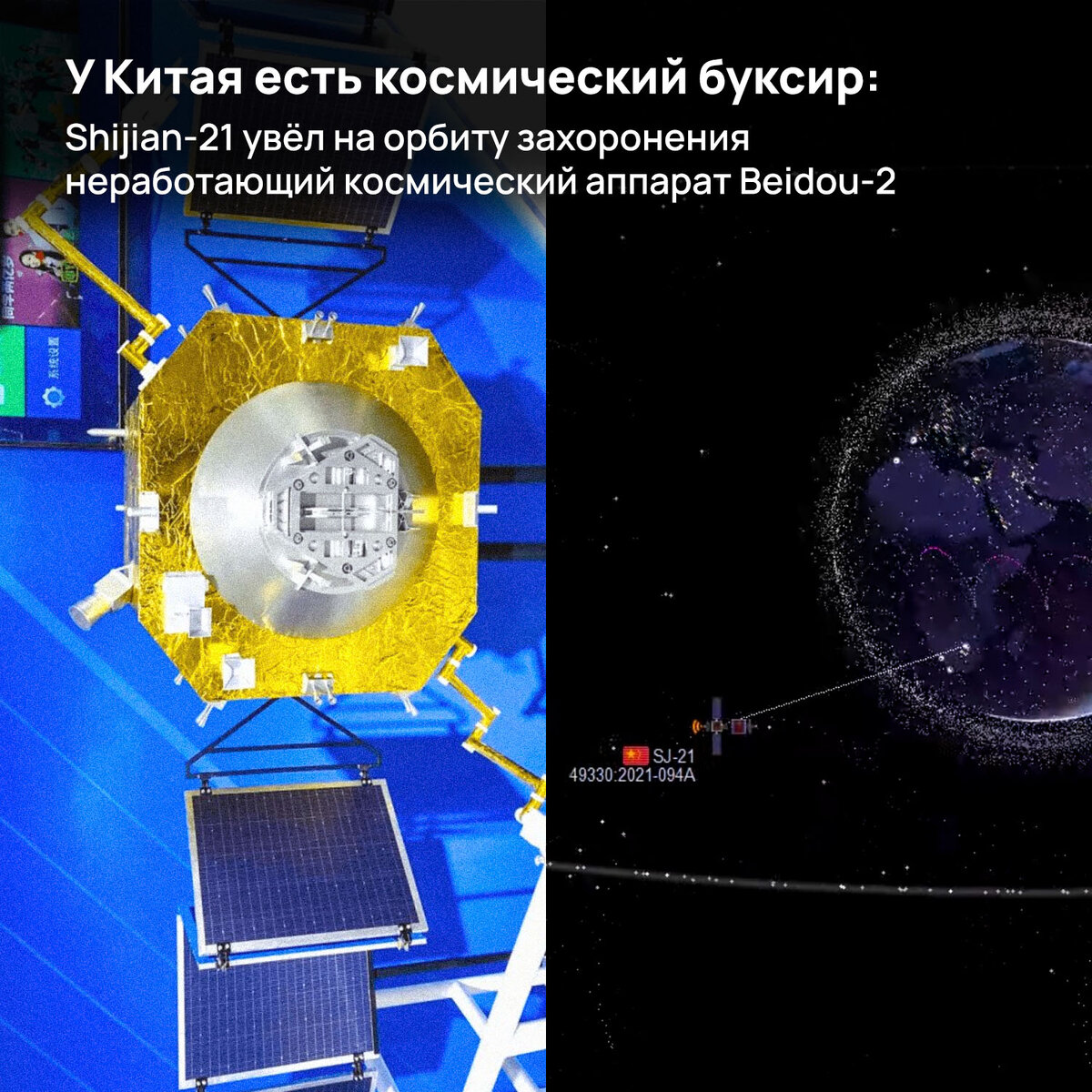 26 января китайский спутник Shijian-21 закончил увод неработающего навигационного спутника Beidou 2-G2 на орбиту захоронения. Теперь весь мир знает, что Китай обладает технологиями стыковки и буксировки спутников.