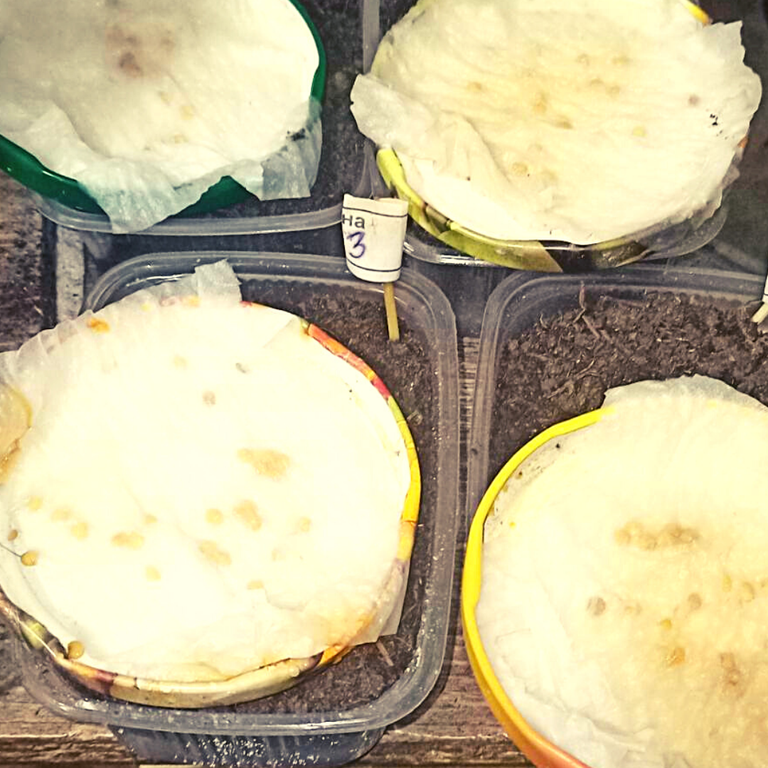 Память девичья - это про меня. В то время, как гуру рассадных проектов рекомендуют замачивание семян в стимуляторах не более, чем на сутки, я напрочь о них забыла, и старенькие семена баклажанов провели в одиночестве и тепле 5 дней. Вспомнила, спохватилась, благо, что влажность в полиэтилене с отверстиями для воздуха осталась. Итак, что мы имеем. Помним, что я замачивала 3 сорта, каждый вариативно положила во влажные салфетки, смоченные эпином или соком алоэ. Первым выудила семена сорта Длинный фиолетовый, их годность была до 12.2019 г. Среди семян, замоченных в эпине, корешки показали 3 штучки. Среди того же сорта, но щедро орошенного соком алоэ - 1 штука, и то только еле показавшийся кончик корешка. Следующим открывала сорт Алмаз годностью до 12.2018 г. Тут результаты не обнадёжили: алоэ семенам не помог, а эпин подействовал всего на 1 семечко. Безо всякой надежды достала из салфетки семена Чёрного красавца со сроком до 12.2017 г. И не зря: ни одного живого. Посеяла в землю я всё ра