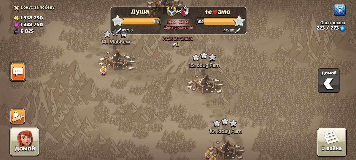 Казалось бы, клан 5-ого уровня, но посмотрите на количество набранным им звёзд. 98! Но дело не в этом.