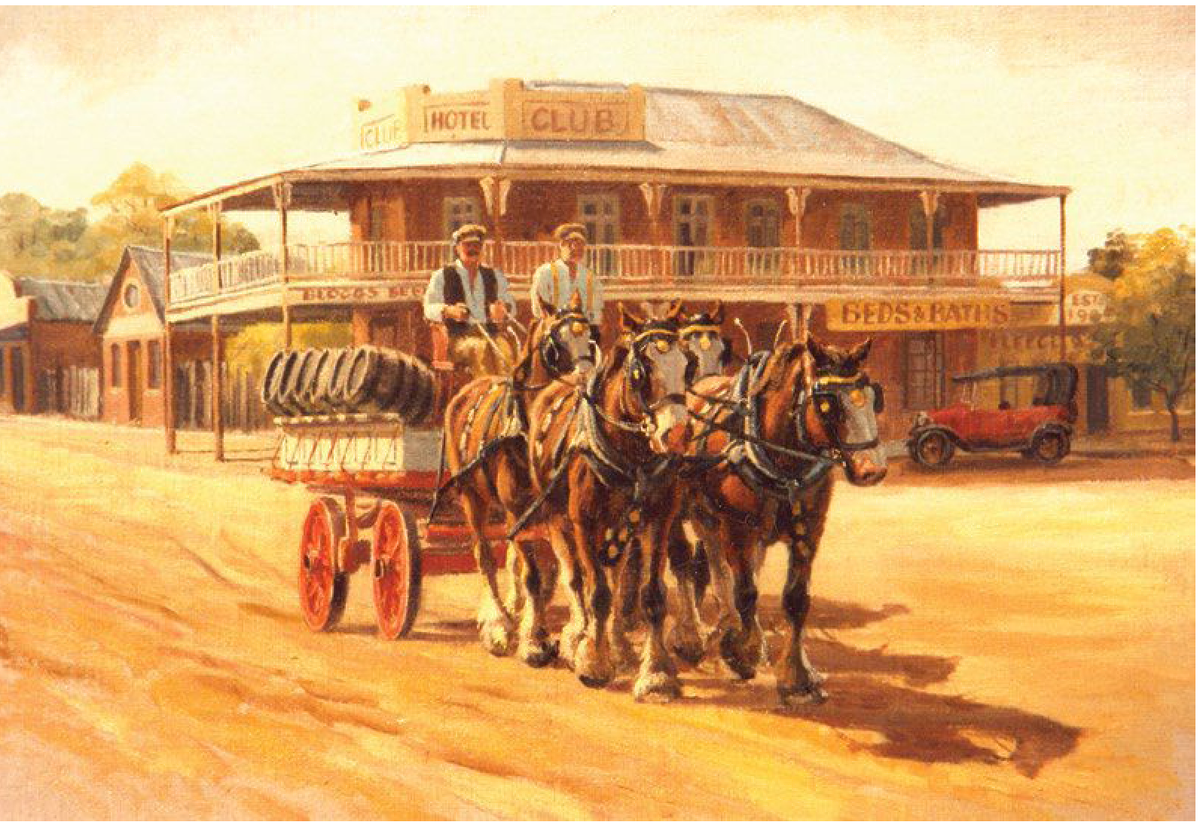 У меня была первая выставка в галерее Sebert Gallery на Argyle Place в The Rocks. Это называлось «Дань уважения австралийскому искусству». Я включил портреты некоторых известных художников в их собственные пейзажи. Там был Уильям Добелл с мальчиками, пьющими пиво с «Цементным рабочим» и парой других мужчин, которых он нарисовал.