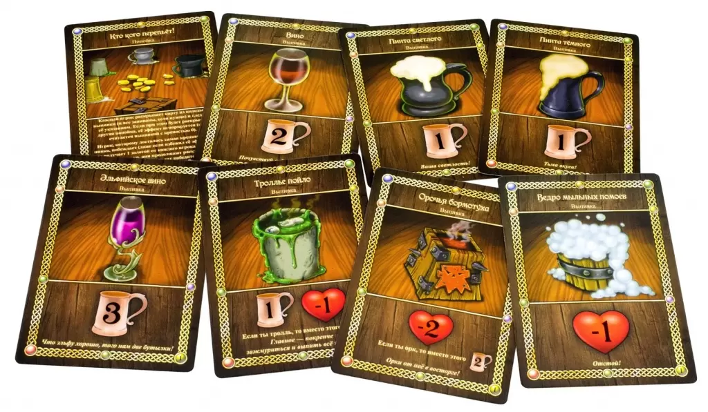 Магазин на Яндекс Маркете - https://market.yandex.ru/business--strana-mistera-razvlechudova/3978925 Таверна Красный дракон - https://market.yandex.ru/offer/KML6C_95s0uRtdFtcBptgA?businessId=3978925 Таверна "Красный Дракон" - очень атмосферная настольная игра, суть которой - споить и разорить своих собутыльников. Она даёт шикарные ощущения расслабона фэнтезийных героев, которые сделали остановку после своих приключений, и восприятие погружения усиливается при соответствующих тематике игры интерьерах. Все персонажи, представленные в первом издании, достаточно архитипичны (жрец, маг, плут и воин), такой набор можно встретить в большинстве ролевых настольных играх, в том числе и в D&D, поэтому Таверна отлично себя проявит после выполнения квестов в игре Runebound. Хотя и как самостоятельная игра она многим нравится, и заставляет к ней возвращаться. Игра требует внимания как за состоянием опьянения персонажа, так и за весом кошелька. На нашей практике выяснилось, что за золотом у людей след